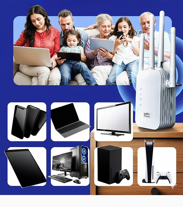 Ретранслятор стабільно працює навіть тоді, коли до мережі підключено багато пристроїв одночасно. Ви можете користуватися смартфонами, ноутбуками, телевізорами, камерами та розумними гаджетами без втрати швидкості. Інтернет не «падає», навіть якщо вся сім’я онлайн. Кожен отримує стабільне з’єднання без затримок. Ідеально для дому, офісу або великої родини.